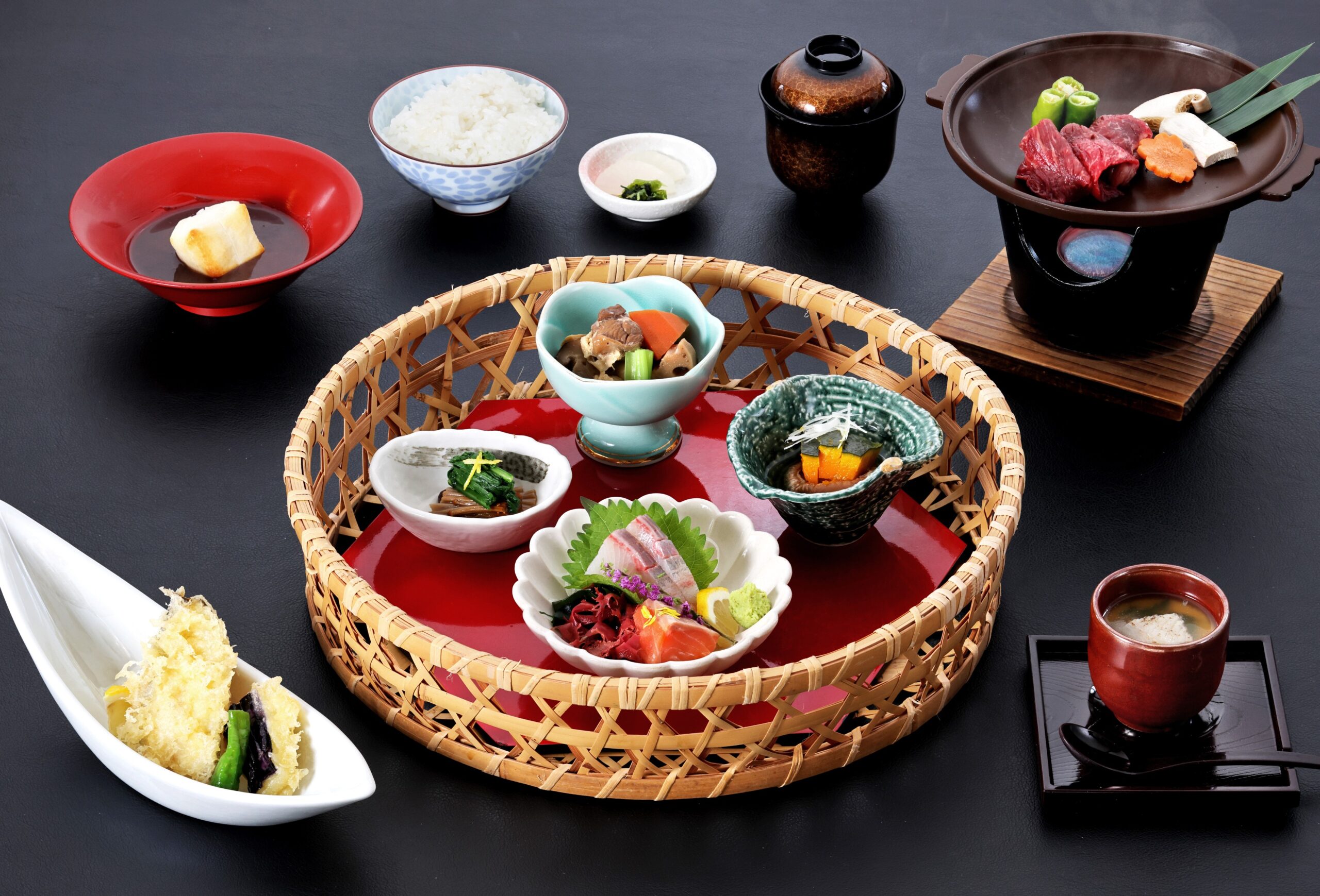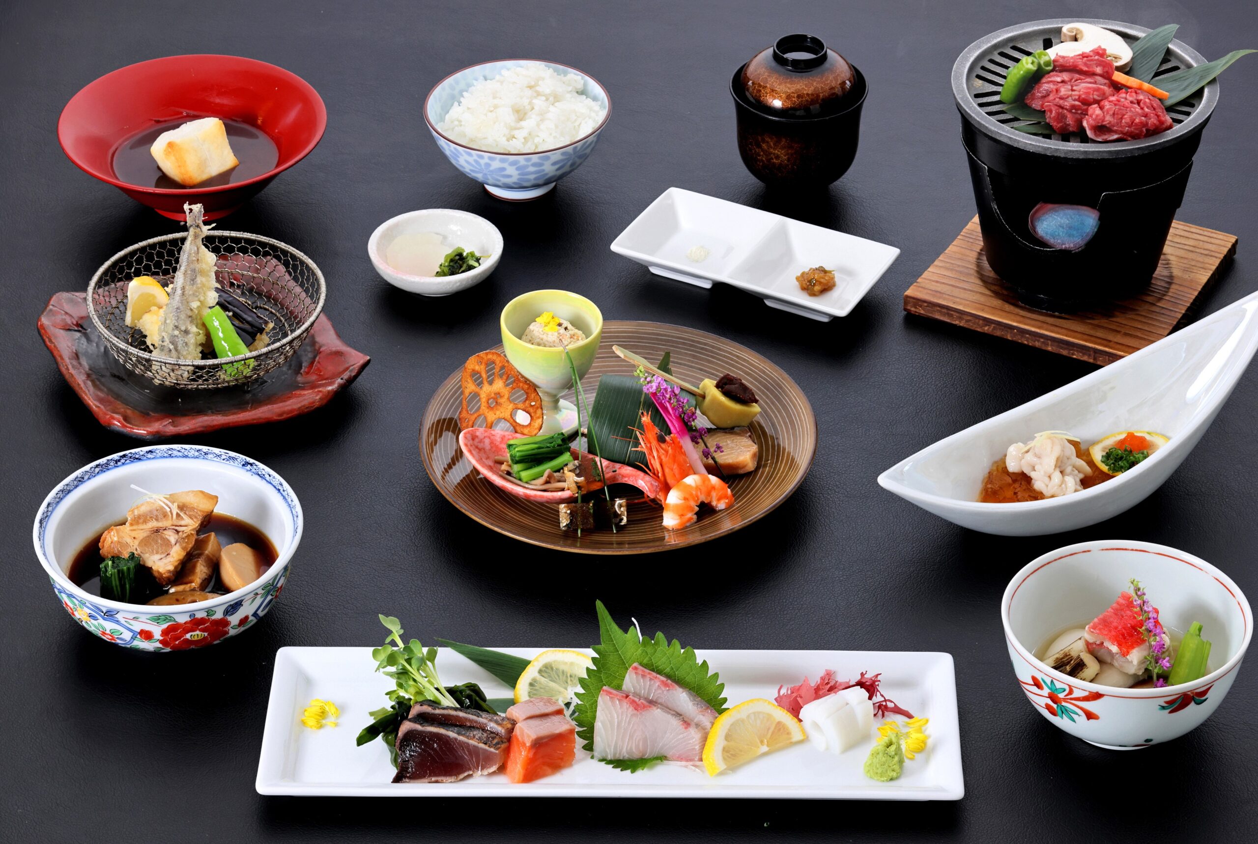 遠くに太宰府や宝満山を眺めながら、ご会食、ご宴会、お祝い事や法事などにもご利用頂けるお座席をご用意。旬の食材を活かした料理長お勧めの会席コースをお愉しみ頂けます。 お二人様からご利用可能な個室をはじめ、最大60名様収容できる大宴会場としてもご利用頂けます。 会席をご利用の方は当日のみ温泉大浴場を入浴無料としております。
