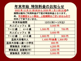 また12月10日(水)、1月14日(水)、2月18日(水)が大浴場が男女入替での営業となります。
