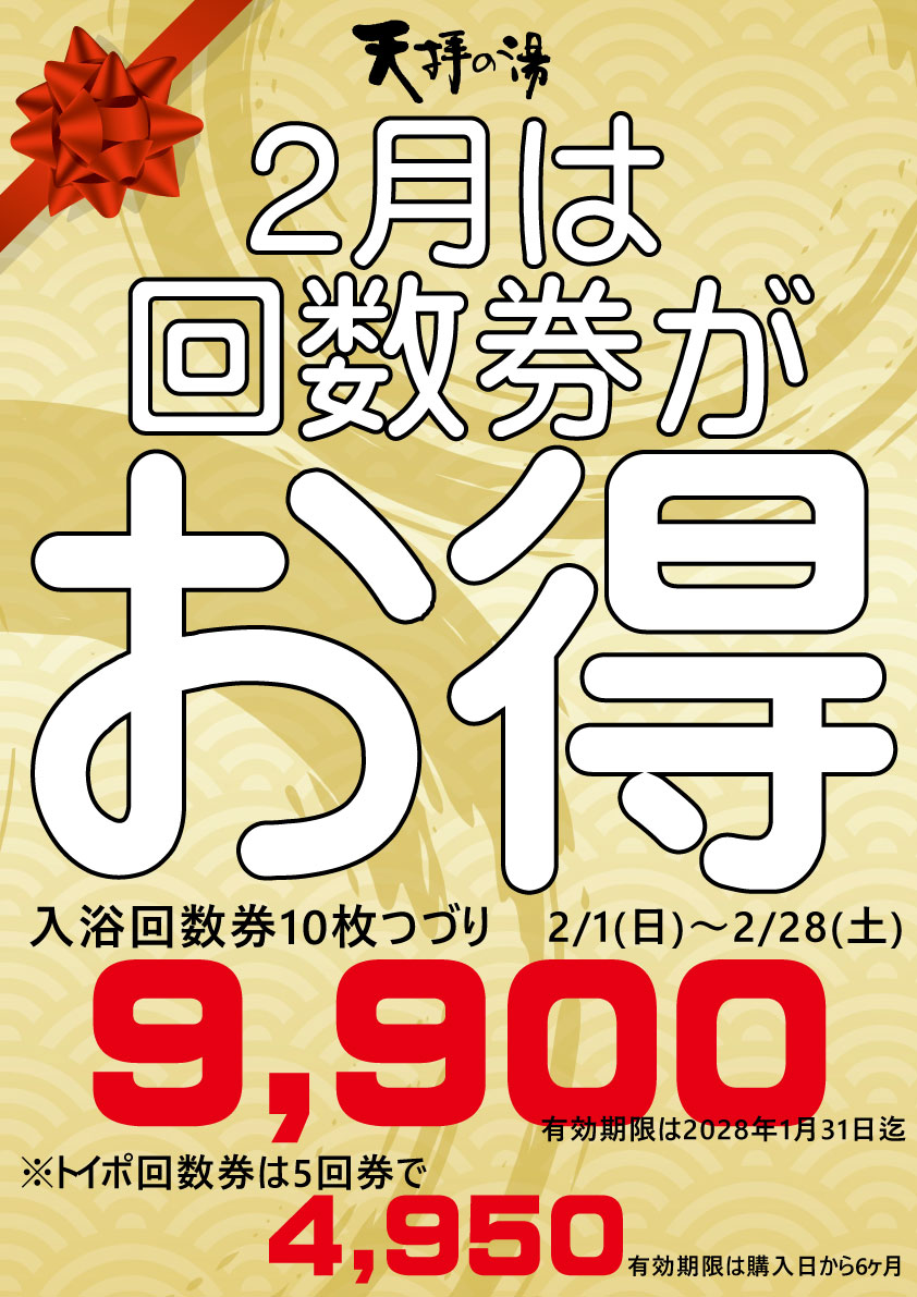♨2月の温泉入浴回数券『お得』販売と2月のイベントご案内♨