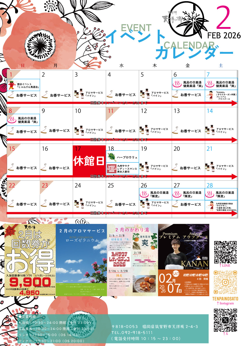 ♨2月の温泉入浴回数券『お得』販売と2月のイベントのご案内♨