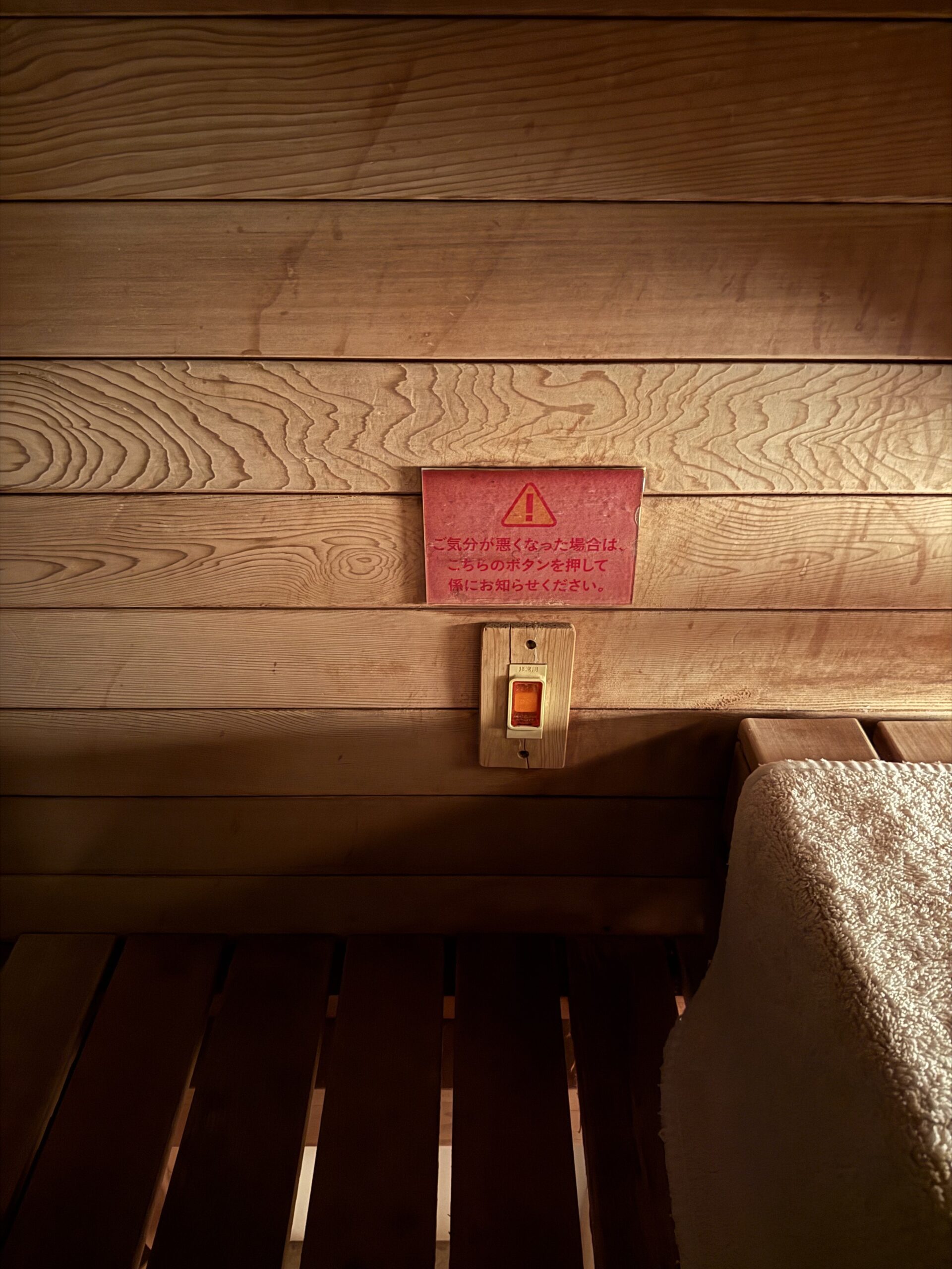 サウナ室内で何かトラブルが発生した際には、すぐに「非常用押しボタン」を押していただきますようお願いいたします。