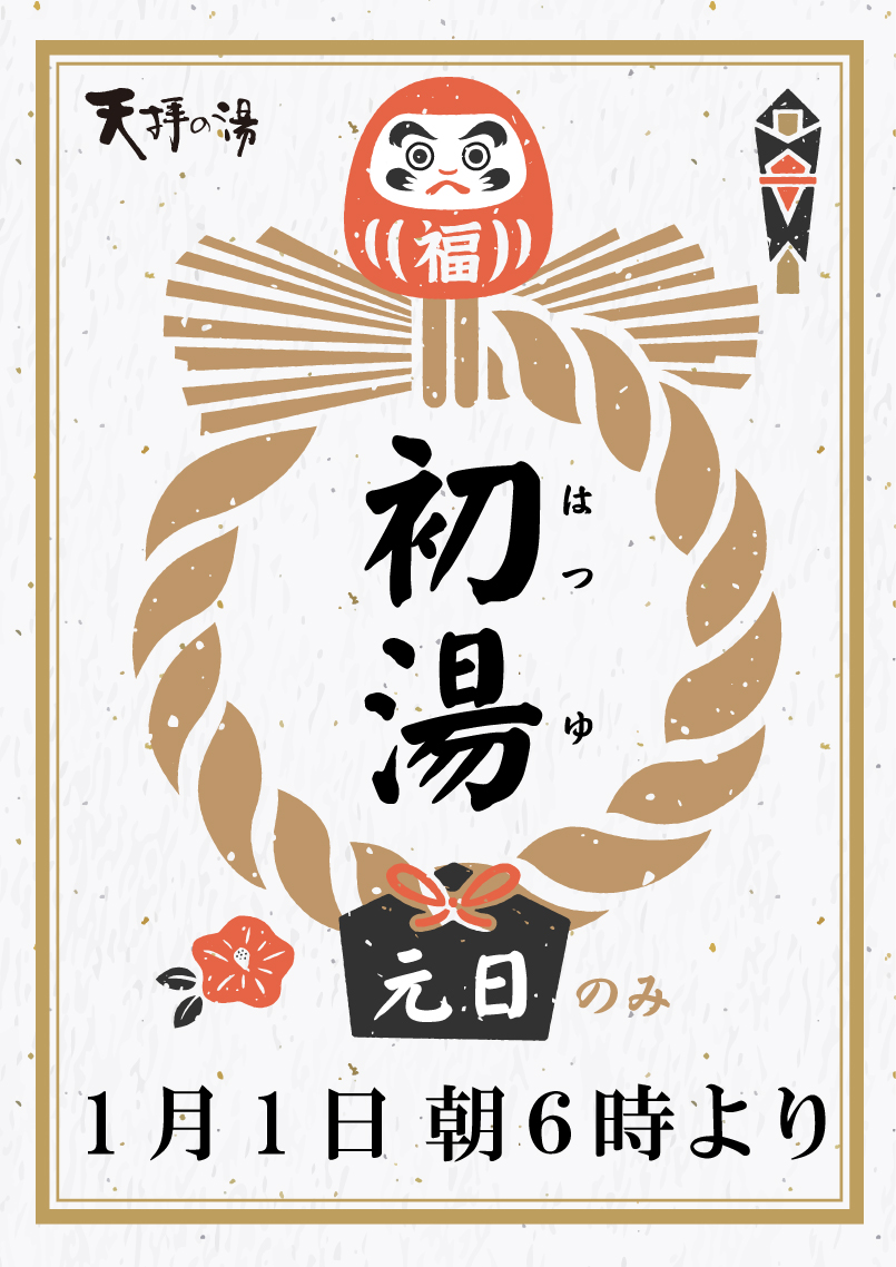 翌1/1元日は早朝6時から初湯営業を行います。