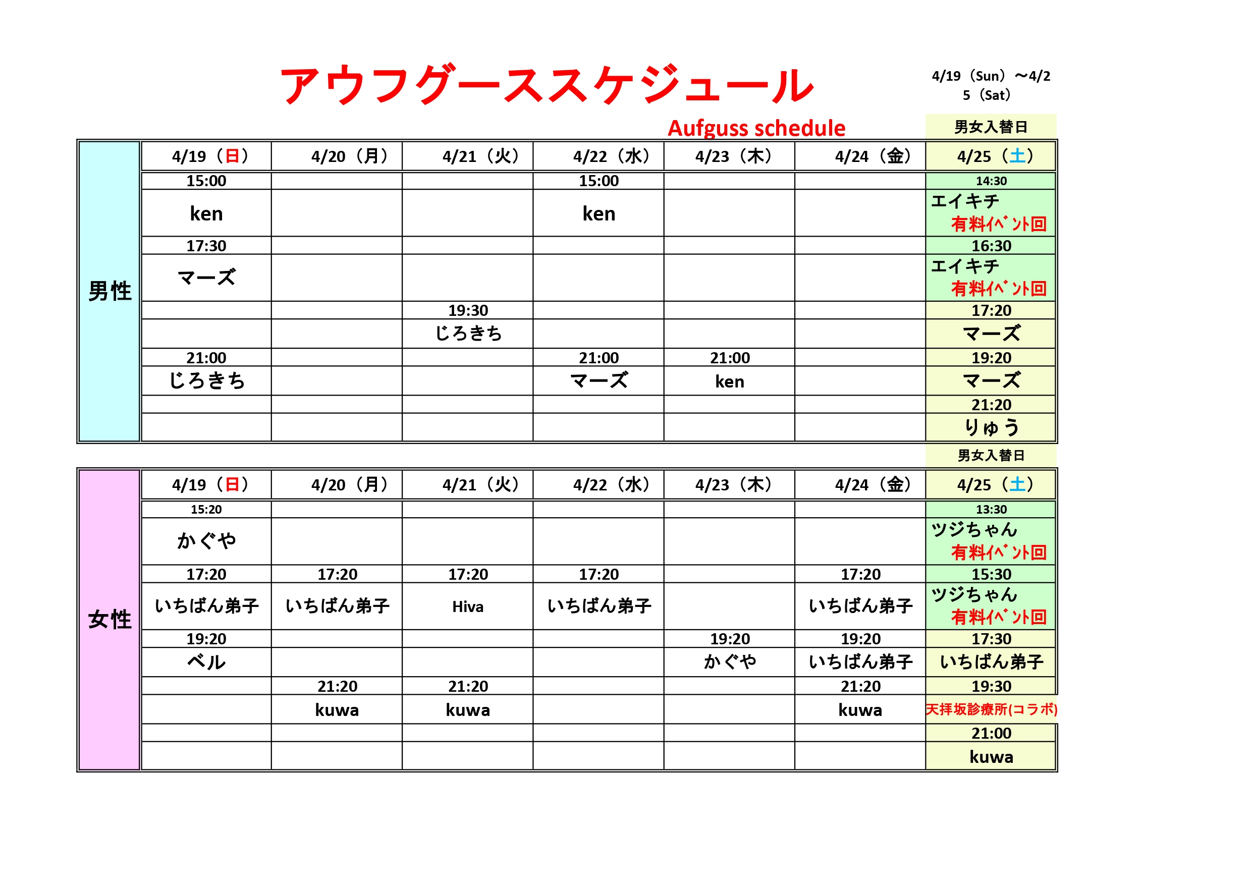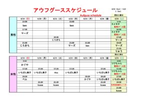 4/19~4/25アウフグーススケジュール